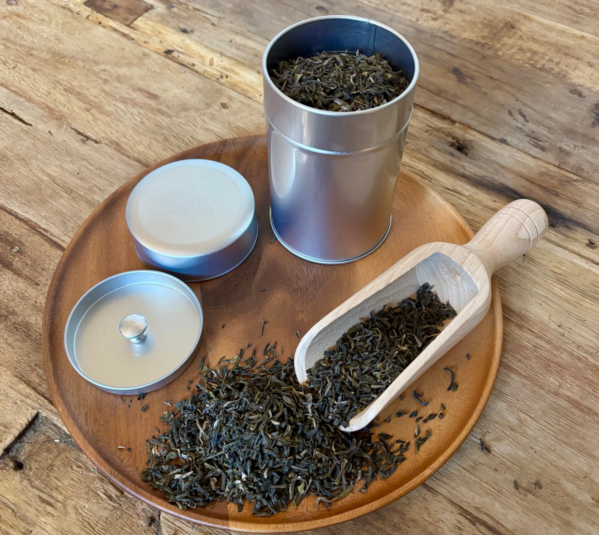 Op het blikje zit GEEN sticker. Wil je er graag een sticker op van je favoriete thee of kruid, dan laat mij dat weten in de opmerkingen, dan stuur ik de sticker mee.